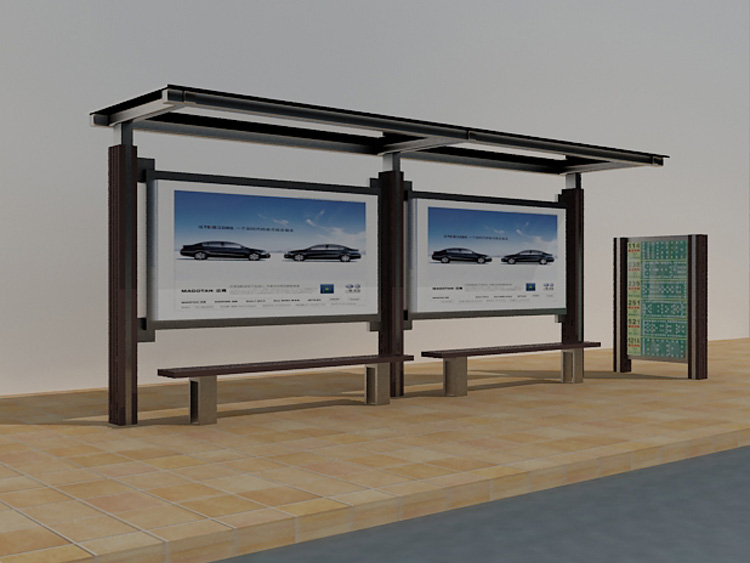公交車候車亭一般是與公交站牌相配套的,為方便公交乘客候車時遮陽、防雨等,在車站、道路兩旁或綠化帶的港灣式公交?空旧辖ㄔO(shè)的交通設(shè)施。由于城市公交的日益發(fā)達,候車亭已發(fā)展成為城市一個不可或缺的重要組成部分,設(shè)計精美的候車亭也成為了城市一道美麗的風(fēng)景。 一般候車亭棚體主要頂棚、立柱、頂弓、廣告燈箱和坐凳組成,也有用隔板來代替廣告燈箱的。