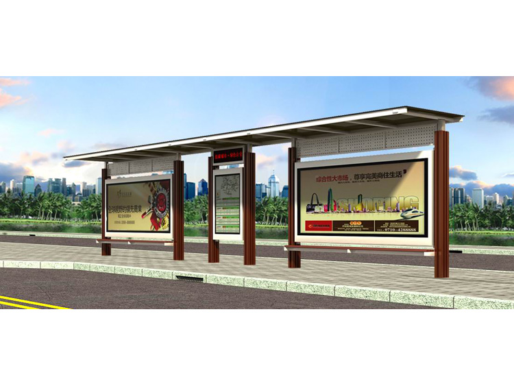 公交車候車亭一般是與公交站牌相配套的,為方便公交乘客候車時(shí)遮陽、防雨等,在車站、道路兩旁或綠化帶的港灣式公交停靠站上建設(shè)的交通設(shè)施。由于城市公交的日益發(fā)達(dá),候車亭已發(fā)展成為城市一個(gè)不可或缺的重要組成部分,設(shè)計(jì)精美的候車亭也成為了城市一道美麗的風(fēng)景。 一般候車亭棚體主要頂棚、立柱、頂弓、廣告燈箱和坐凳組成,也有用隔板來代替廣告燈箱的。