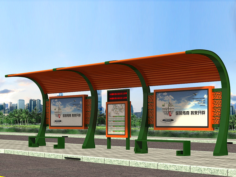 公交車候車亭一般是與公交站牌相配套的,為方便公交乘客候車時遮陽、防雨等,在車站、道路兩旁或綠化帶的港灣式公交停靠站上建設的交通設施。由于城市公交的日益發(fā)達,候車亭已發(fā)展成為城市一個不可或缺的重要組成部分,設計精美的候車亭也成為了城市一道美麗的風景。 一般候車亭棚體主要頂棚、立柱、頂弓、廣告燈箱和坐凳組成,也有用隔板來代替廣告燈箱的。